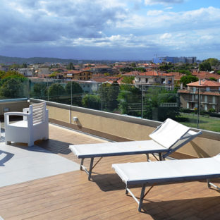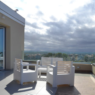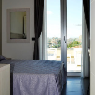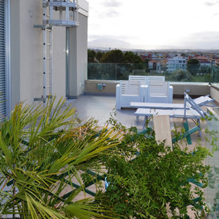 Questo piccolo ma accogliente monolocale, offre il grande vantaggio di avere una terrazza panoramica al 5°e ultimo piano. Un letto matrimoniale, un piccolo armadio e un angolo cottura con piastra ad induzione, frigorifero e forno a microonde, l’essenziale per chi ama gustarsi le proprie vacanze all’aperto.